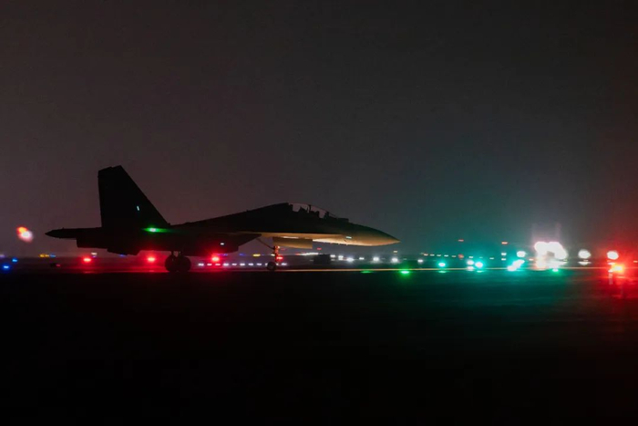 子夜,南部战区空军航空兵某旅机场灯光闪烁,数架战机接替升空,拉开下半夜飞行训练的序幕。