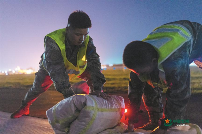 夜训结束,保伞员整理阻力伞。
