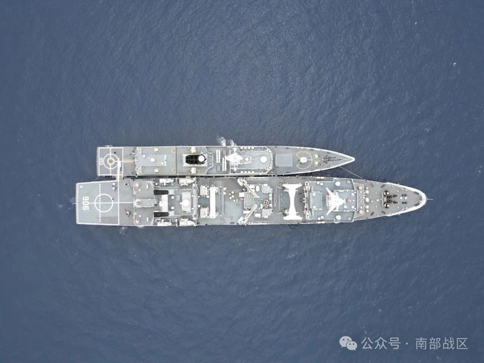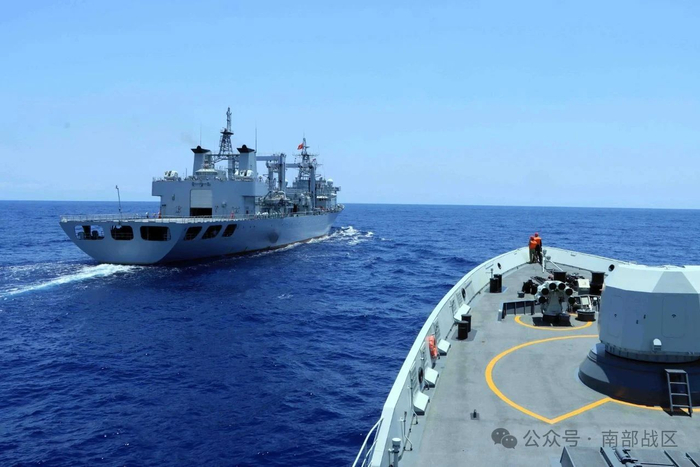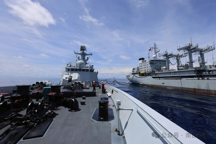 近日,南海某海域,海军大理舰协同洪湖舰展开海上应急补给、舰机协同等多课目训练,锤炼了部队实战能力。(蔡盛秋、方智坤、吕戈 )