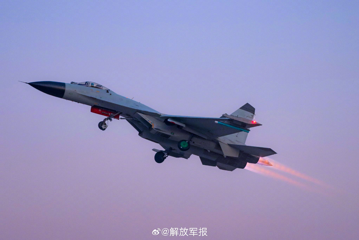 近日,海军航空大学某团开展跨昼夜飞行训练。轰鸣声起,数架战机接续起飞,直冲云霄!