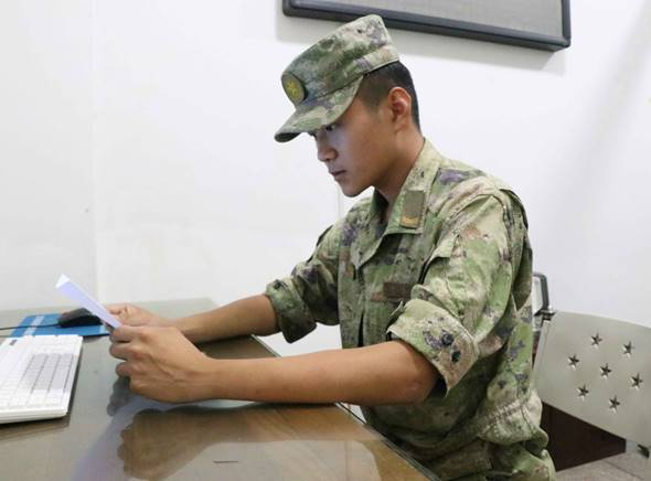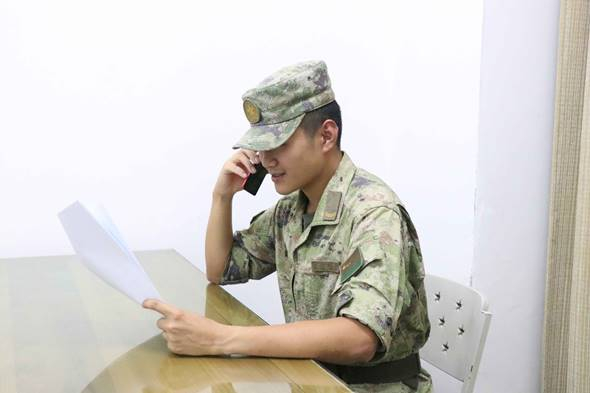 战士唐涛涛迫不及待给连队报喜