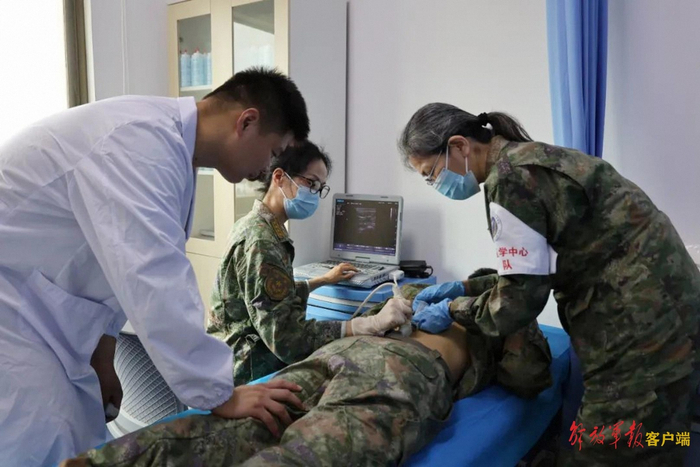 2024年,空军特色医学中心抽组多学科专家医疗队,赴空降兵军所属多支部队开展“健康军营行”活动。图为叶超群(右一)为官兵诊疗。