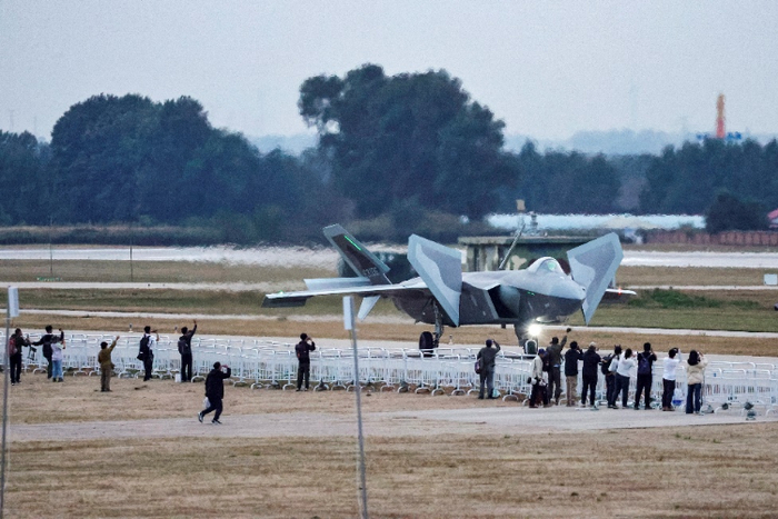 ↑歼-20滑出返程,观众向围栏跑去挥手致意