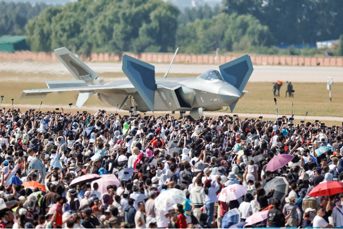 ↑歼-20在此次航展上的精彩展示