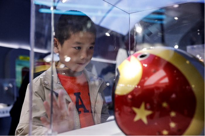 ↑在金头盔前凝望的小朋友