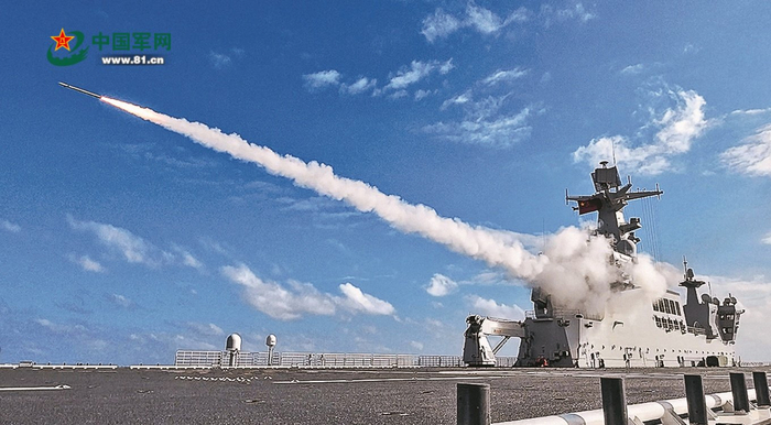 “‘敌导弹’来袭!”战斗警报骤然响起,编队各舰快速机动,占领有利阵位。作战指挥室内,口令声此起彼伏,屏幕上各类作战数据不断闪烁,雷达战位死死“咬”住目标。“发射!”指挥员一声令下,导弹呼啸而出,成功击毁来袭目标。