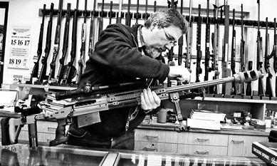 在奥地利维也纳一家武器专卖店,店主检查一支狙击步枪。新华社发