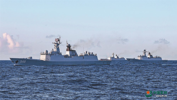 战舰列阵,硝烟弥漫。近日,海军某驱逐舰支队组成舰艇编队赴某海域开展多科目训练,检验战术战法,锤炼战斗作风。