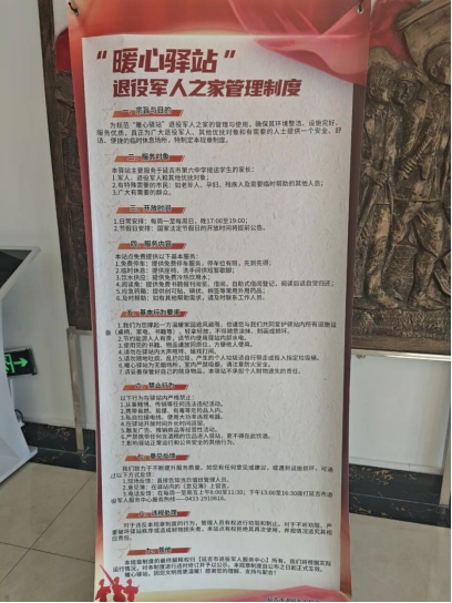曾在“暖心驿站”接受过帮助的现役军人、退役军人表示:“一杯主动递过来的热水、一次热心引导停车,一次应急手机充电,等等,虽然都是点滴小事,但让人、退役军人在寒冬里感受到了实实在在的温暖!”