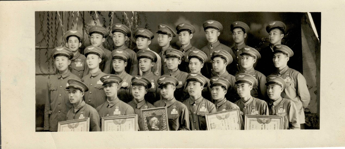 1954年8月,在空军第九师27团拍摄的集体照(前排右三为宋文骢)